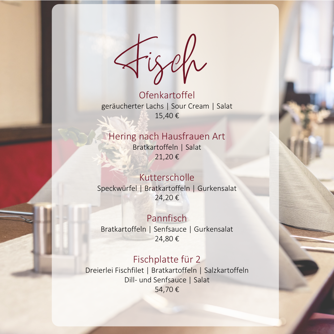 Ob Klassiker wie Matjes, Scholle, saftige Steaks oder ein kleiner Snack zwischendurch - wir verwöhnen Sie mit verschiedenen, bunten Köstlichkeiten ganz frisch aus der Region. Dazu servieren wir den passenden Wein oder ein frisch gezapftes Bier.